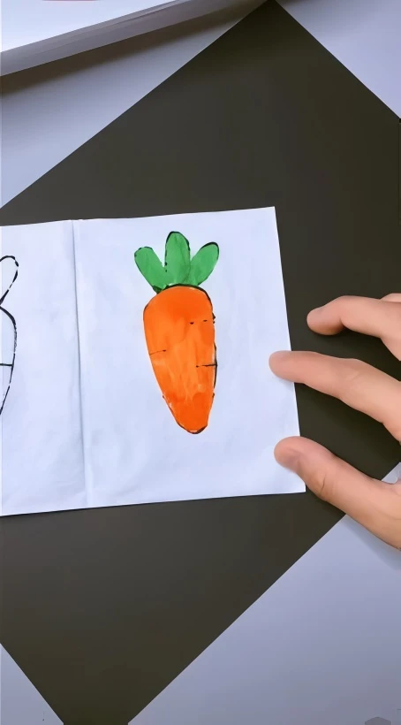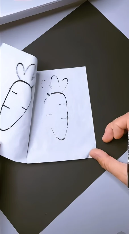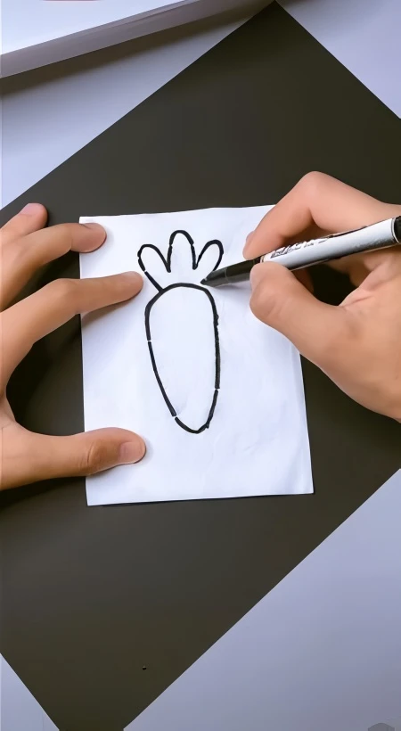 On the top layer of the folded paper, use your black permanent marker to draw a simple shape. A carrot, a chick, a frog, or a flower are great ideas to start with.