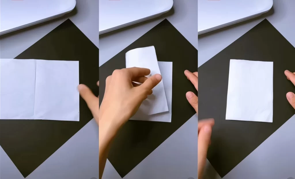 Start by taking a single paper towel or tissue that is folded in half. If you are using a single sheet, just fold it neatly in half yourself. The fold is the key to the entire trick!