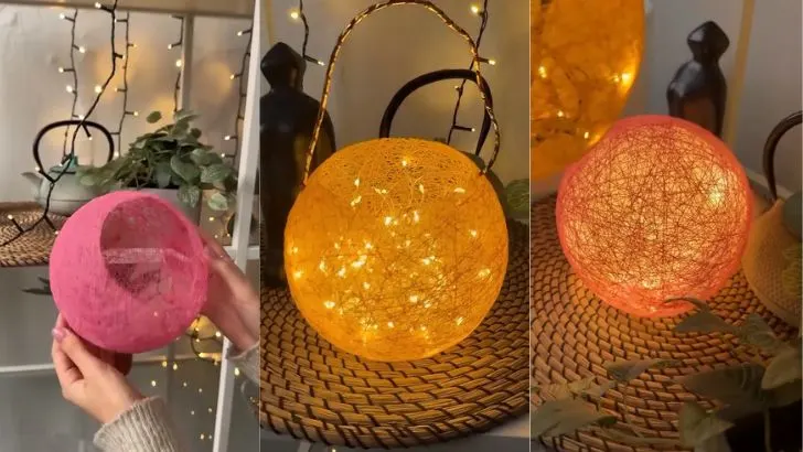 The light shining through the intricate threads creates a warm, mesmerizing glow, perfect for adding a cozy ambiance to any room. Create a few in different colors and sizes for a stunning display.