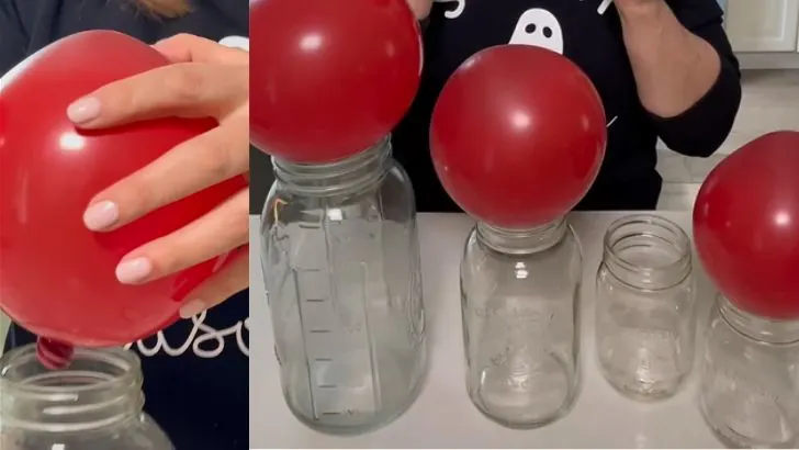 Start by blowing up your balloons to different sizes to create ghosts of varying heights. Place each balloon, knot-side down, on top of a mason jar.