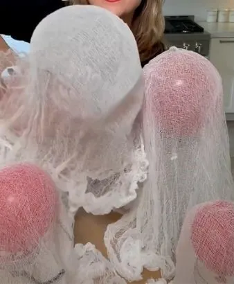 Once your cheesecloth is fully hardened, it’s time to release the form. Carefully pop the balloon with a pin or scissors and gently peel it away from the inside of your hardened ghost.