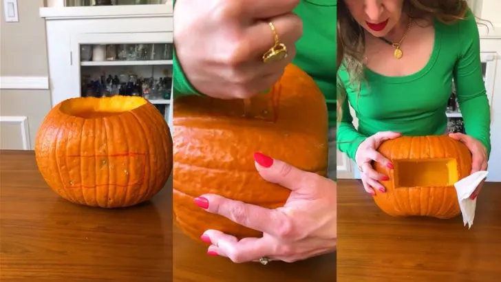 Prep Your Pumpkin: As always, start with a clean, hollowed out pumpkin.