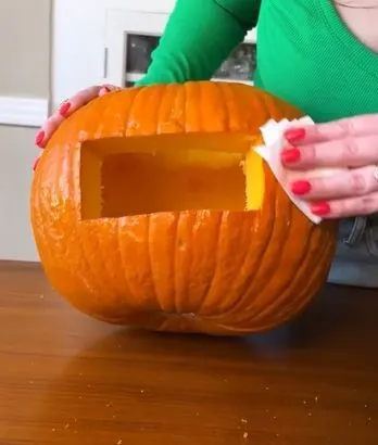 Wipe off the outline from the pumpkin’s surface: Take 70% isopropyl alcohol on a tissue paper and wipe off the remaining outline on the pumpkin.