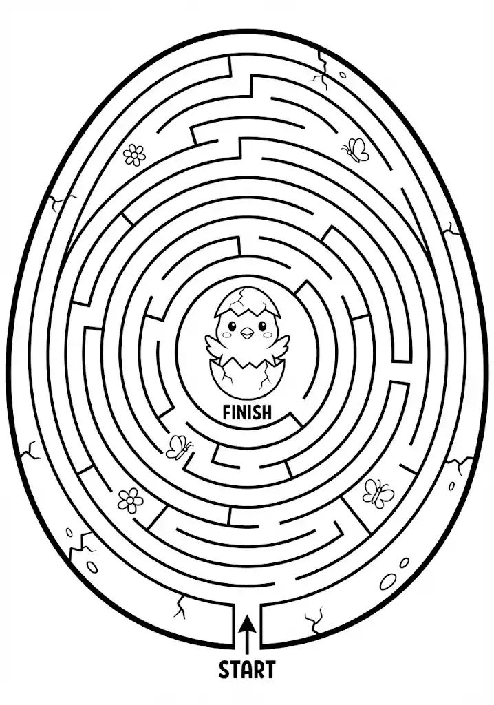 The Challenge: A cute baby chick has hatched! Help it navigate a circular maze to find its mama hen. This round maze helps kids practice drawing curved lines.