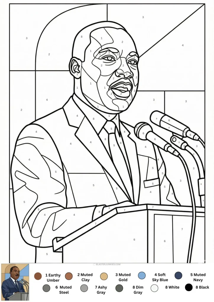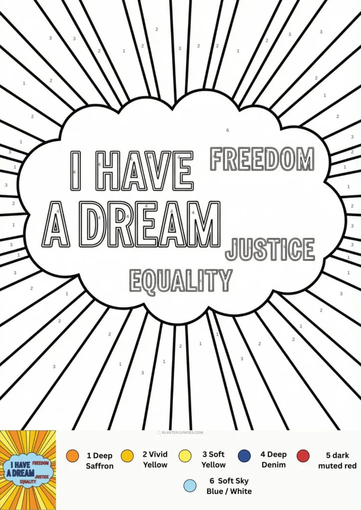 Focus & Reflection: The concentration required for color by number creates a quiet atmosphere, perfect for listening to stories about MLK or playing an audio clip of his speeches.