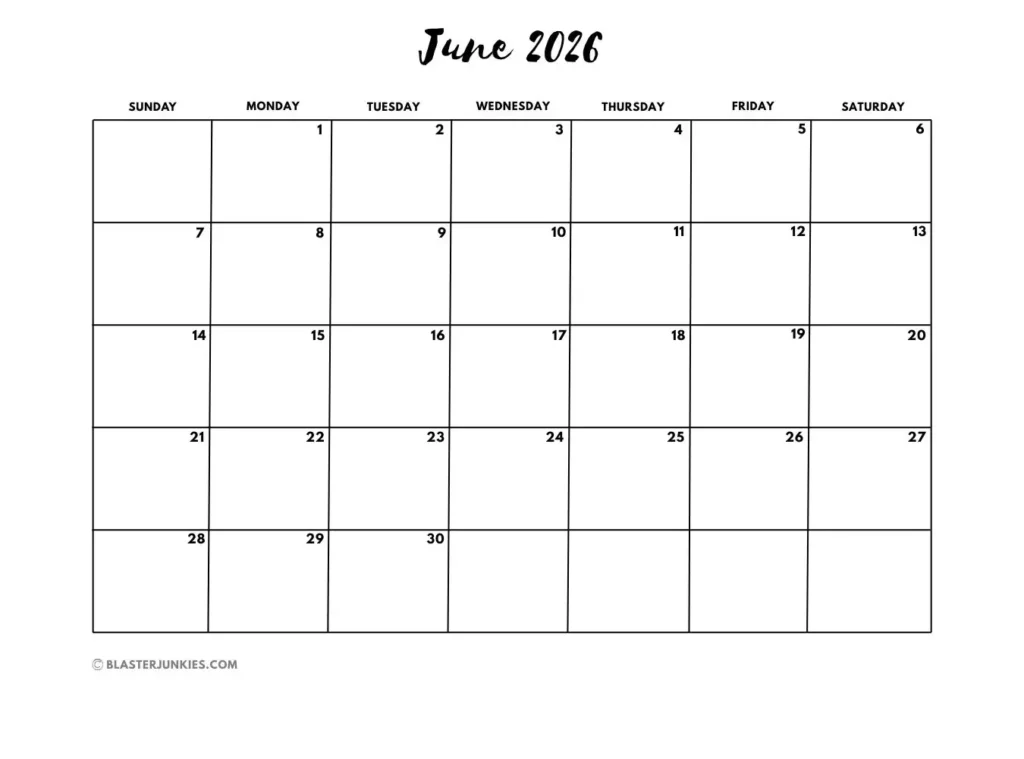Summer is officially here! The June calendar is essential for juggling a change in routine. With school out, use this template to track summer camps, swim lessons, and family road trips.