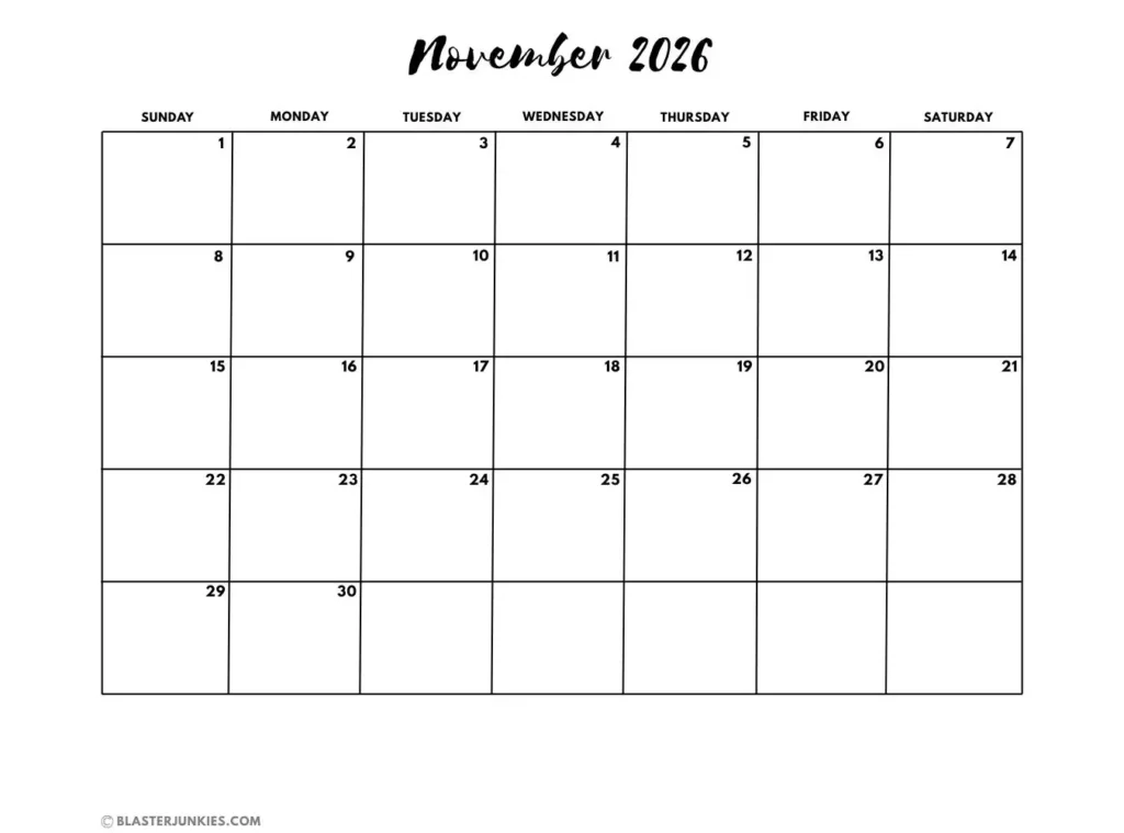 The holiday season begins in earnest. The main event is Thanksgiving (Nov 26), but don’t forget Veterans Day (Nov 11). This calendar is your best friend for hosting duties use it to plan your grocery shopping, cooking schedule, and guest arrivals.