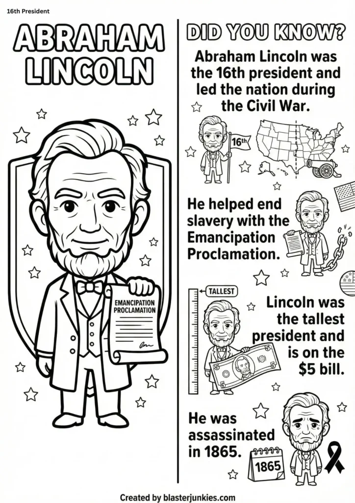 The Portrait: A clear, “super cute” cartoon-style outline of the President. These are designed with bold lines, making them easy for toddlers and preschoolers to color with crayons, while detailed enough for older kids to use colored pencils.