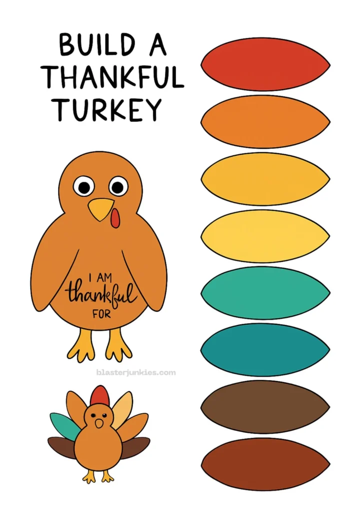 Download and Print: Download the “Build a Thankful Turkey” template. It’s available in two formats: