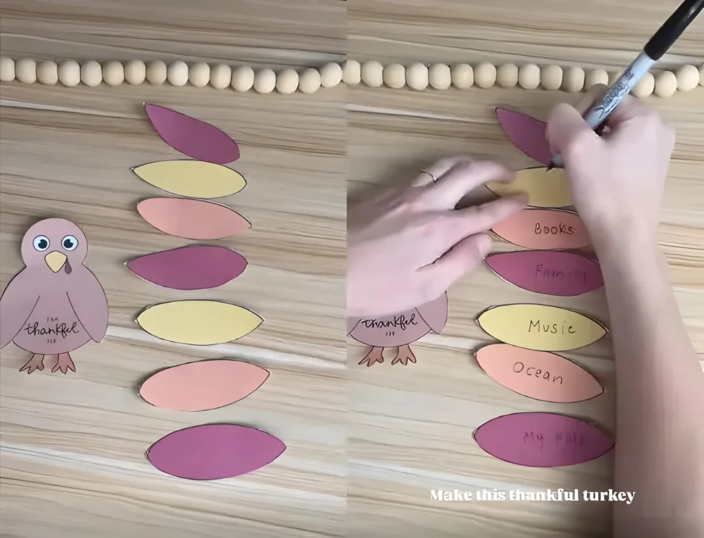 Table Centerpiece: Place the completed turkeys on the kids’ table, a mantel, or an entryway table as a festive and meaningful decoration.