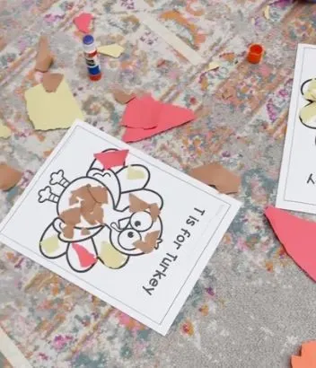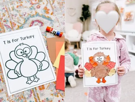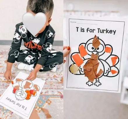 Create a Gallery: Hang the completed “T is for Turkey” pages on a wall or bulletin board to create a festive fall display that celebrates both the holiday and the hard work of your little crafters.
