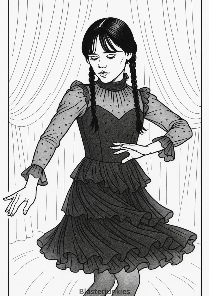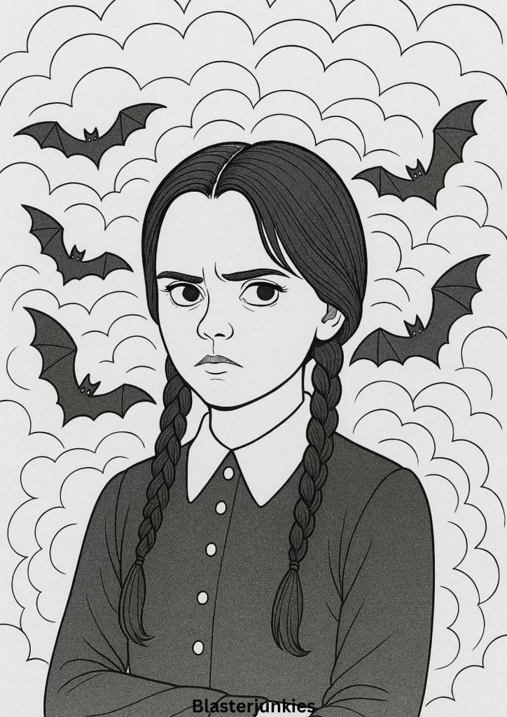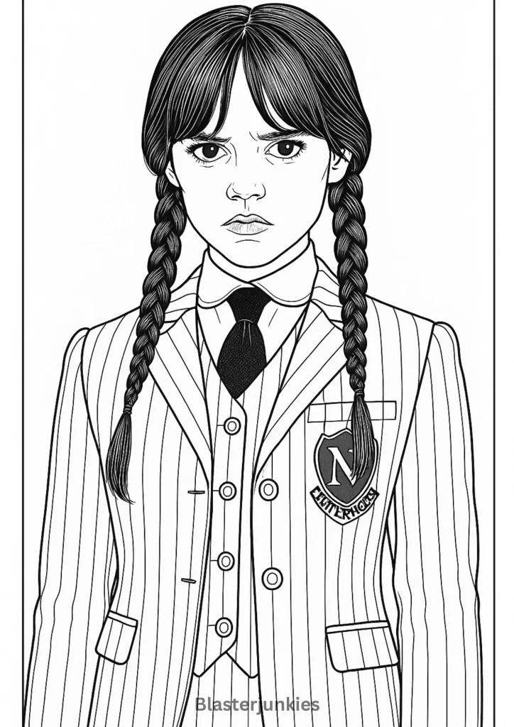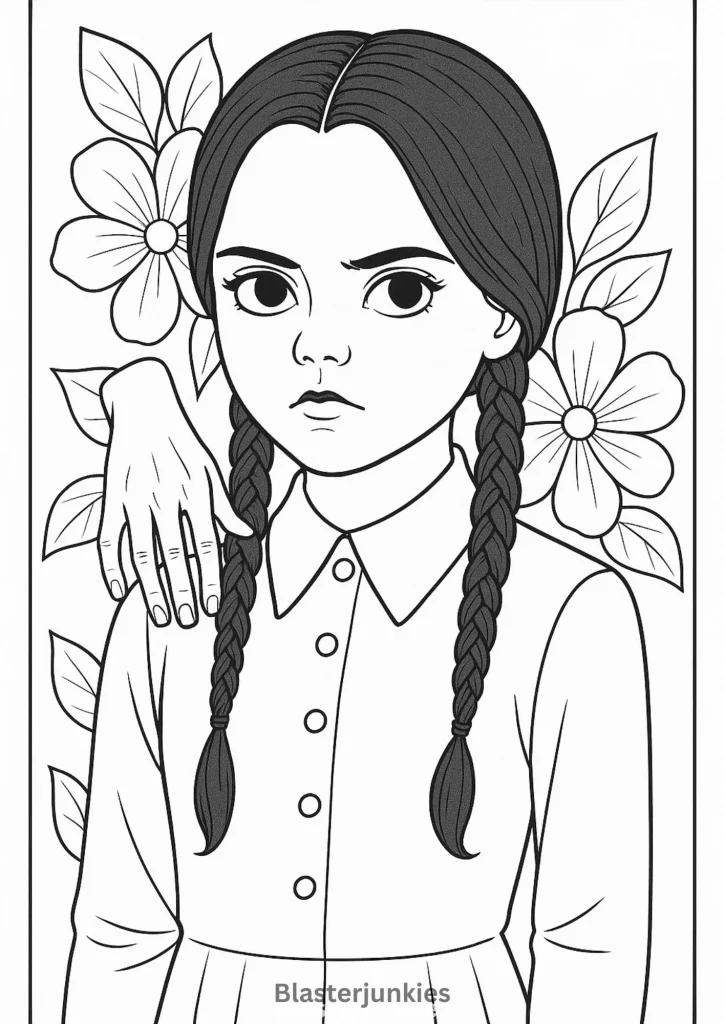 Wednesday Addams Coloring Page Free Printable pdf