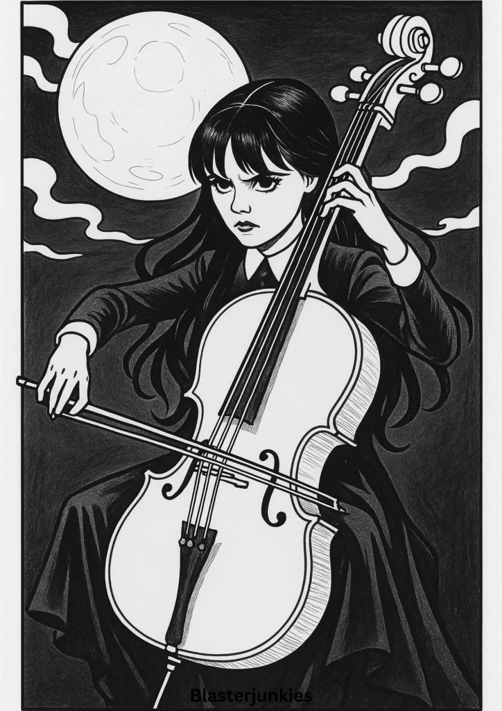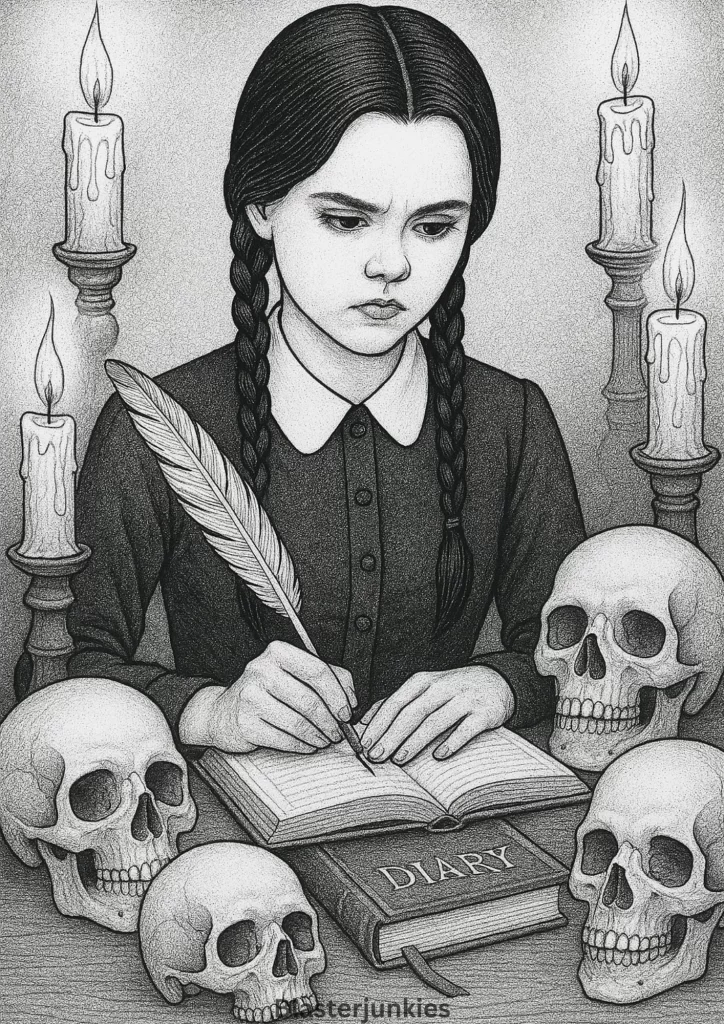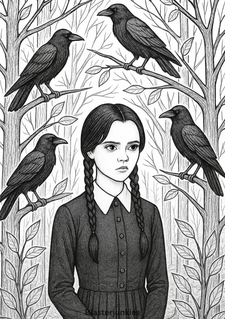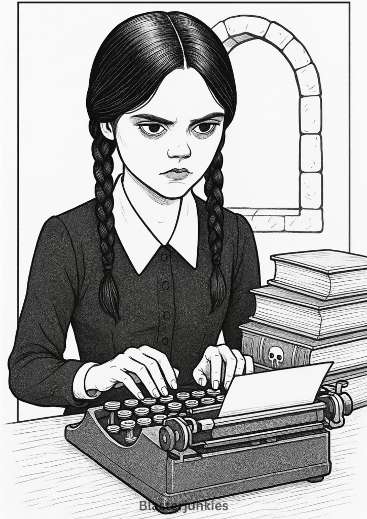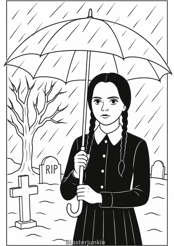 Wednesday Addams Coloring Page Free Printable pdf